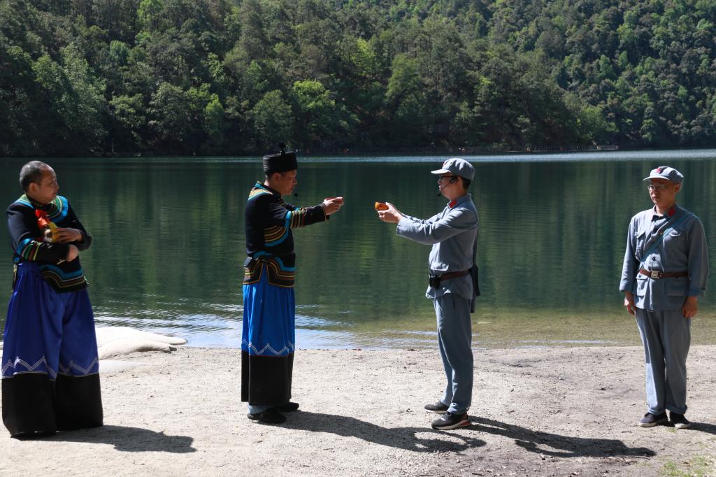 5月22日是“彝海结盟”纪念日,当天上午,在彝海边上的“刘伯承同志与小叶丹结盟取水点”,一场由攀枝花学院党史学习教育专题读书班的学员们自编自导自演的“彝海结盟”情景短剧正别开生面地上演。