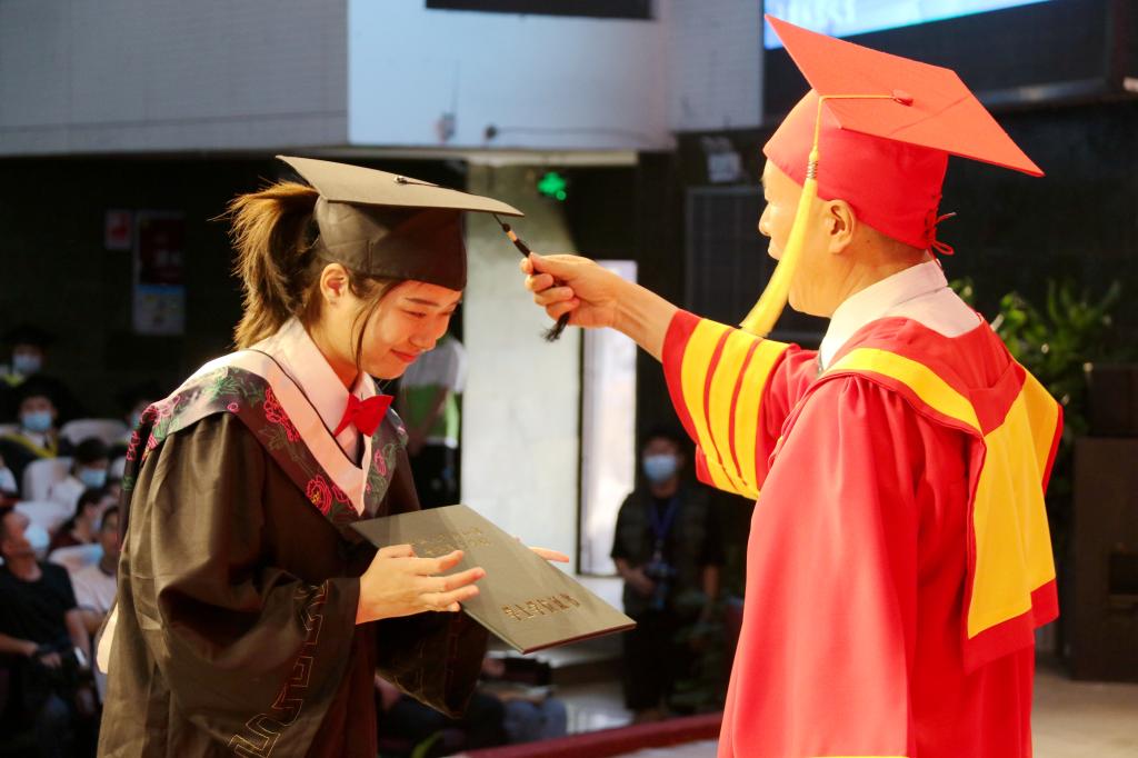 6月21日,我校2021届毕业典礼暨学位授予仪式在会堂隆重举行。全体在家校领导、校学位评定委员会全体委员、授位导师代表、各学院党政负责人、各机关教辅部门负责人、2021届全体在校授位学生、家长代表、教师代表1600余人参加典礼。