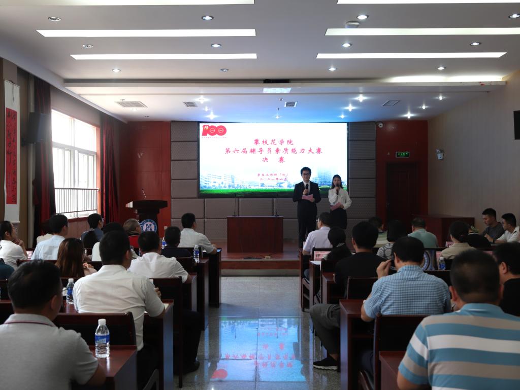 6月25日,我校在办公楼四楼附楼会议室举行了第六届辅导员素质能力大赛决赛。校党委副书记胥刚,组织部、人事处、宣传部、教务处、保卫处、后管处、团委负责人,7名专家评委,二级学院分管学生工作领导、学生科科长、全体辅导员,学工部全体成员以及部分学生代表参加了此次比赛。