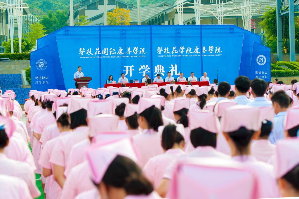 上午,攀枝花国际康养学院、攀枝花学院康养学院在我校东苑校区篮球场举行开学典礼,1300余名在校师生参加开学典礼。典礼由我校党委副书记、校长王曙光主持。