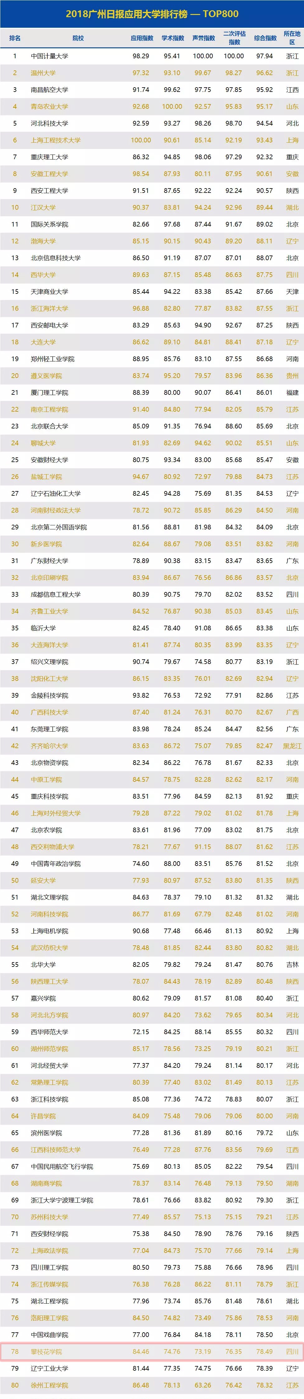 2018广州日报应用大学排行榜—应用指数TOP100 |