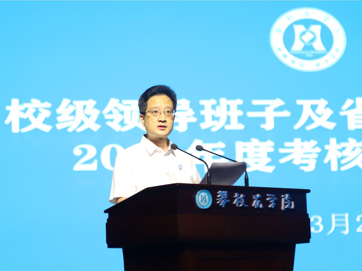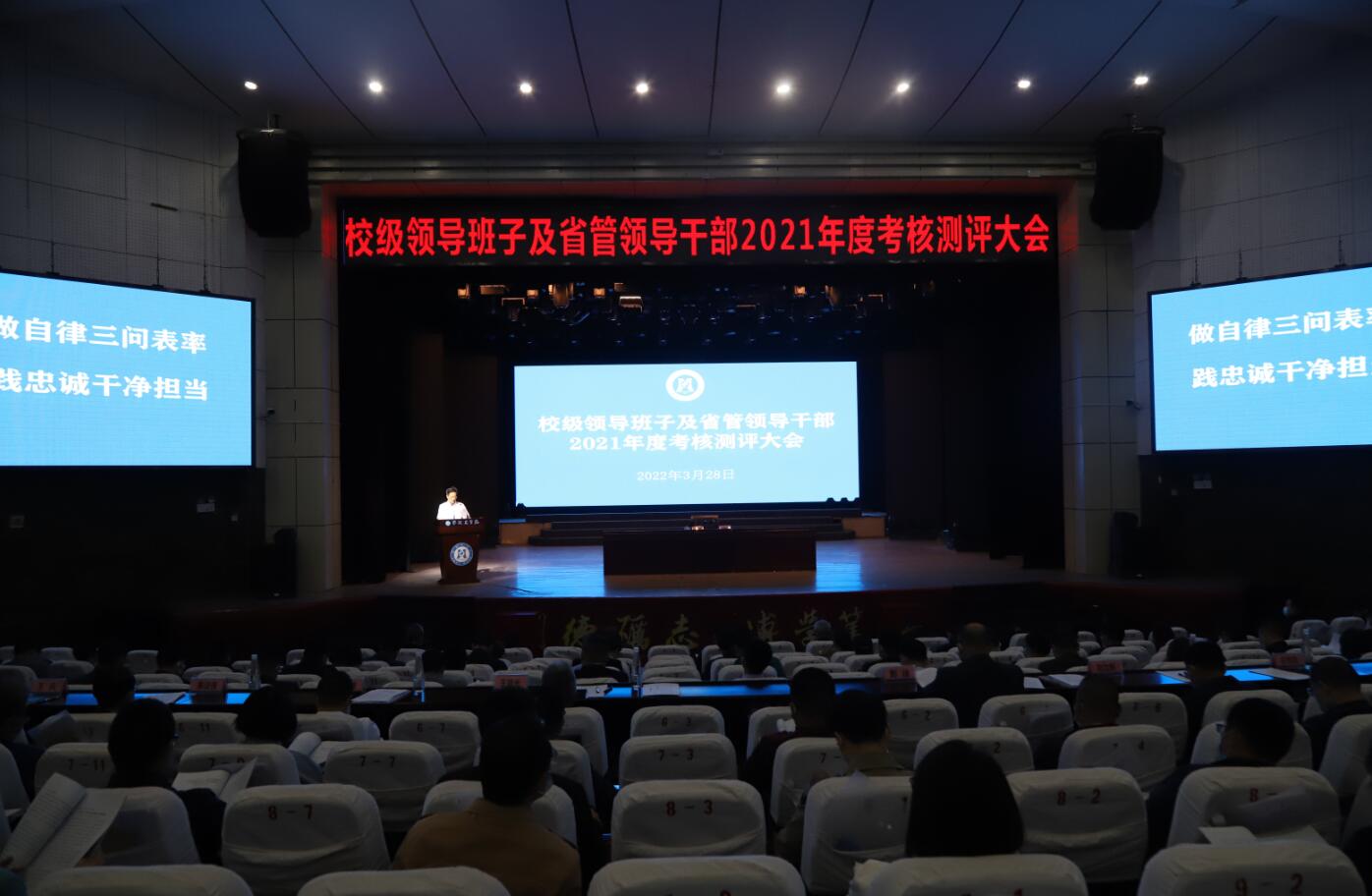 3月28日上午,我校校级领导班子及省管领导干部2021年度考核测评大会在学校会堂召开。校党委书记王斌主持会议。学校领导班子成员,处级领导干部,职代会、教代会负责人,在校的省、市党代表、人大代表、政协委员,民主党派在校负责人,正高专业技术职务人员代表共计142人参加了测评大会。