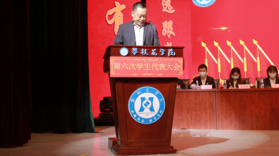 学生工作部部长周传兴致开幕词,他对学生会工作提出了三点希望:一是围绕中心,服务大局。以习近平新时代中国特色社会主义思想为指导,以加强对同学的政治引领为根本;二是提升自我,树立榜样。各位代表要充分发挥先锋模范作用,引导广大同学自觉把个人理想融入到党和人民的共同奋斗之中,努力成长为德智体美劳全面发展的中国特色社会主义建设者和接班人;三是饱含热情,竭诚服务。学生委员会成员要不断加强与广大同学的密切联系,培育服务平台,增强服务意识,提高服务能力,加强服务项目体系建设。