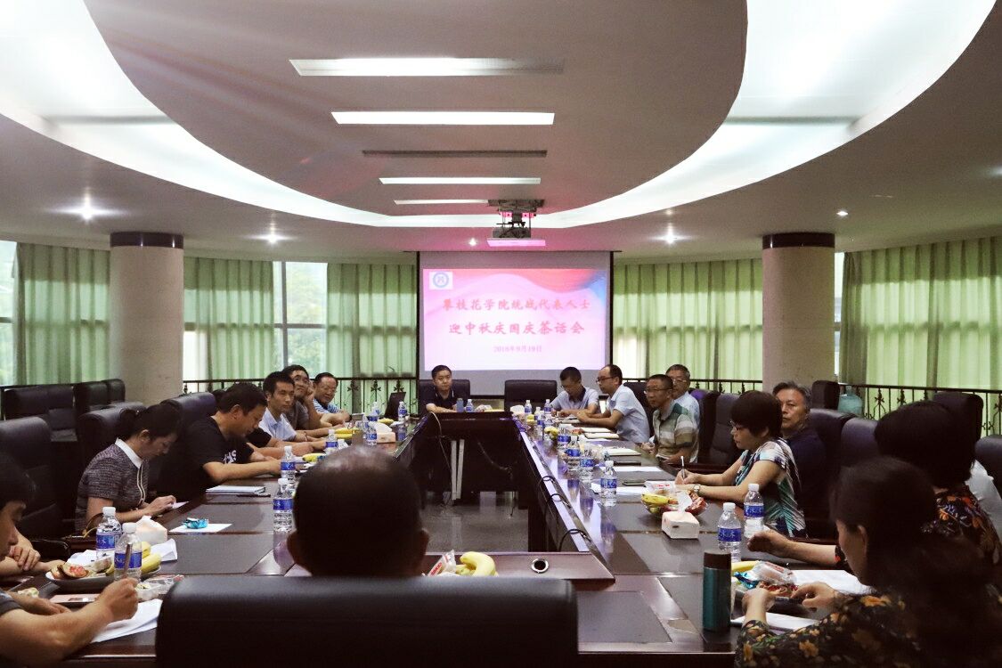 为畅叙友情、凝心聚力,9月19日下午,我校在办公楼四楼会议室组织召开统战代表人士“迎中秋、庆国庆”茶话会。校党委副书记、校长王曙光,党委副书记胥刚,与省市政协委员、人大代表,各民主党派、统战团体代表,侨胞侨眷、留学人员代表欢聚一堂、共庆佳节。会议由学校统战部常务副部长肖国玉主持。