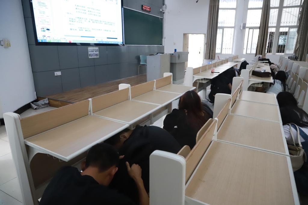 30秒后,第一次地震波结束,在授课教师、志愿者和公寓管理员等指引下,学生们迅速从教室、寝室、图书馆等地有序疏散,安全迅速到达各集结点并清点人数。