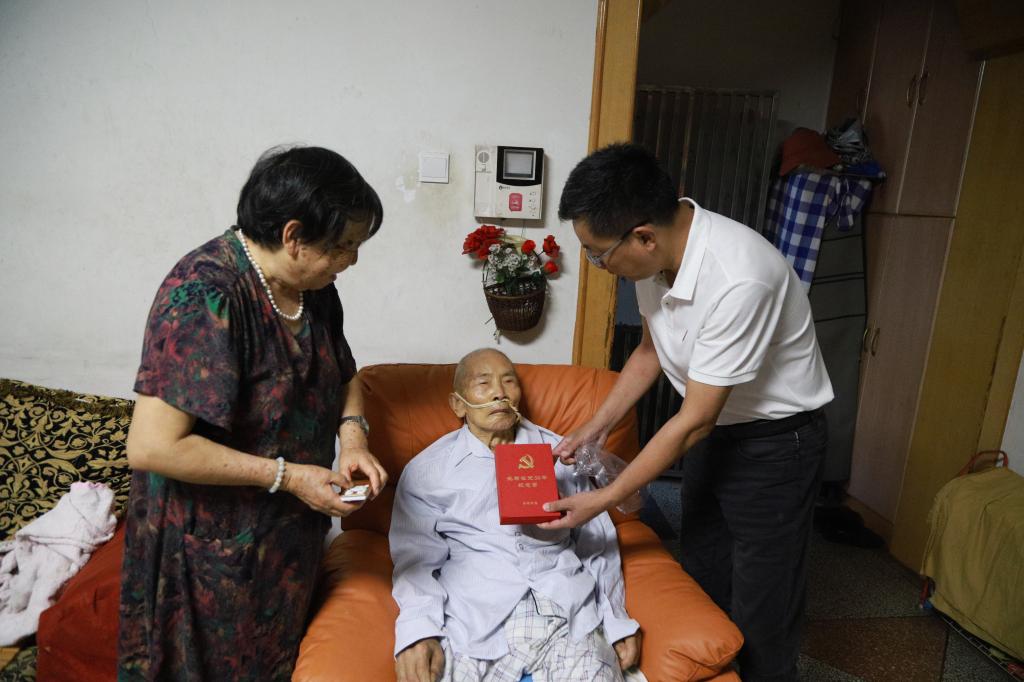 7月1日,在建党101周年之际,副校长刘立新带队到老党员王云召、武开永、邓兴义家中走访慰问并送上“光荣在党50年”纪念章。