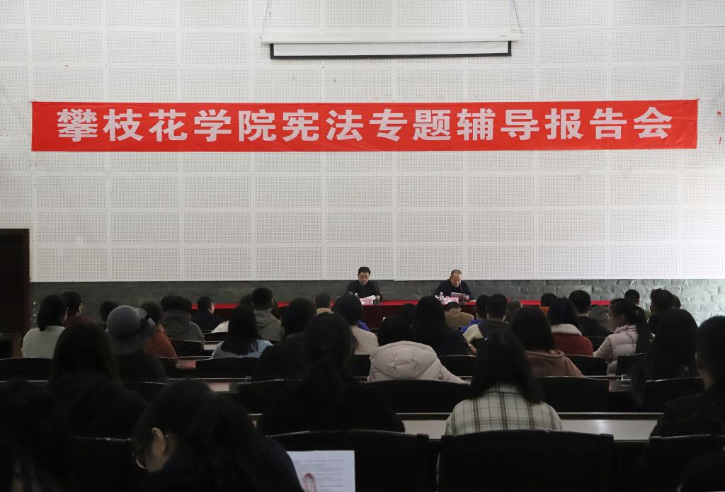 为深入贯彻习近平总书记关于加强宪法学习宣传教育的重要指示精神,切实加强宪法和宪法修正案学习宣传,提高广大师生的宪法意识,12月27日下午,我校特邀市人大常委会党组书记、主任黄正富在图书馆学术报告厅作宪法辅导专题报告会。报告由校党委书记肖立军主持。来自学校相关职能部门、人文学院等180多名师生聆听了报告会。