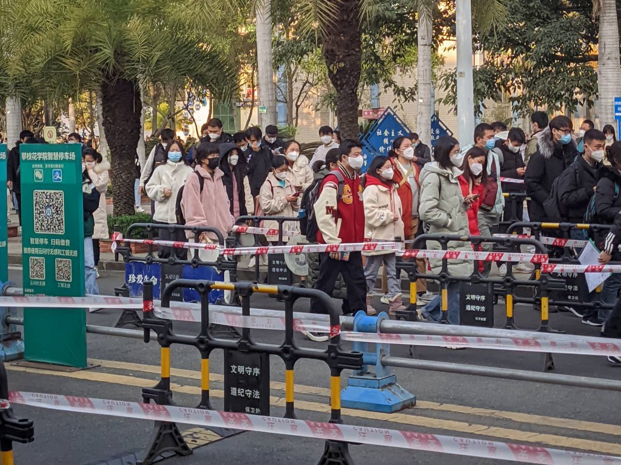 12月24日至25日,2023年全国硕士研究生招生考试攀枝花学院考点如期举行。我校共设置127个普通考场、2个专用考场和14个应急处置考场,共有4863名考生在我校考点顺利参加考试。全校共组织300余名监考老师、200名考务人员和大批后勤安保人员,认真做好考务组织、疫情防控、后勤安保等工作,通力保障考试顺利举行。同时,2023年是我校硕士研究生首届招生,全国共478名考生报考我校。