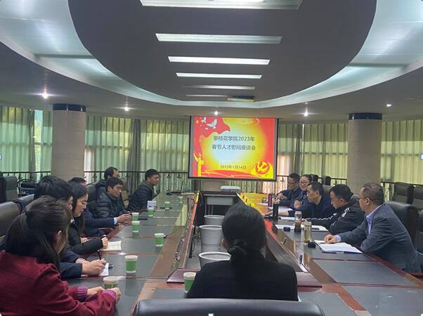 1月14日,新春到来之际,学校在办公楼400会议室召开2023年春节人才慰问座谈会。副校长张旭辉出席会议并讲话。党委组织部、人事处(党委教师工作部、职改办)负责人、高层次人才代表参加会议。