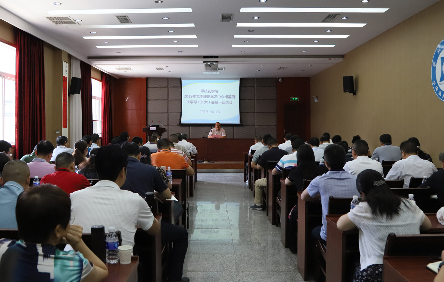 为全面贯彻落实《国务院办公厅关于深化产教融合的若干意见》要求,着力实现产教融合新突破,全面提升人才培养质量,4月26日下午,学校在办公楼四楼附楼会议室召开了党委理论学习中心组2019年第四次学习(扩大)会暨干部大会,全体校领导、副县级及以上干部和各单位助理参加会议。党委书记肖立军主持会议并总结讲话。