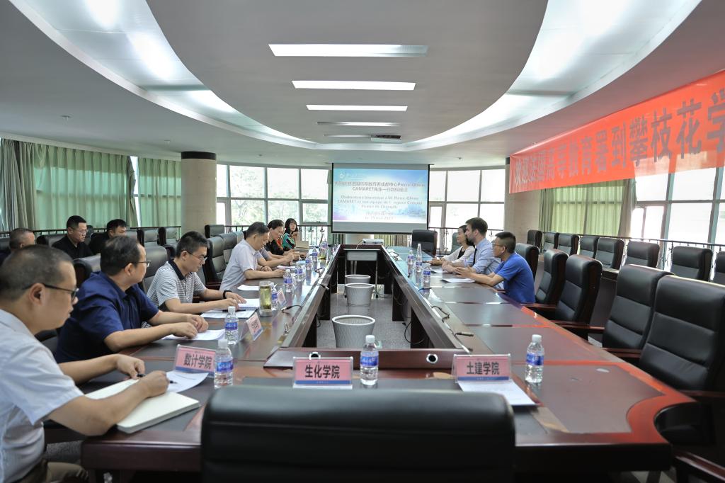 5月25日,法国高等教育署成都中心Pierre-Olivier CAMARET一行3人来校交流访问。副校长张旭辉出席并主持交流座谈会。国合处、招就处、钒钛学院、生化学院、艺术学院、外国语学院、文学院、土建学院、数计学院负责人参加座谈。