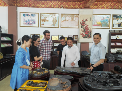 座谈结束后,Pierre-Olivier CAMARET一行前往凌云楼二楼茶艺研习室就留学法国的具体内容向学生们做了介绍。交流访问期间,他们还参观了学校校史馆、苴却砚博物馆及鑫苑工艺美术制品厂。