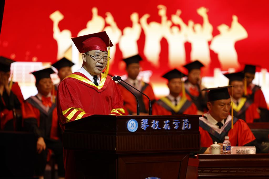 他祝福毕业生保持阳光、永葆健康、永远美丽。希望同学们洒下阳光并收获阳光,向阳而生、逐光而行,内心始终充满温暖明媚;永葆身心健康、思想健康、精神健康,自律作息、悦纳自我、热爱生活,学会群处、和谐共生,充满正能量,发出热与光。他强调,奋斗的青春最美丽,勉励同学们怀抱梦想又脚踏实地,敢作敢为又善作善成,练就爱党爱国、自律自强的大情怀、大作为,成就干事创业、为父为母的宽肩膀、硬本领,以“小我”正青春拥抱“大我”新时代,为美好生活而奋斗前行!