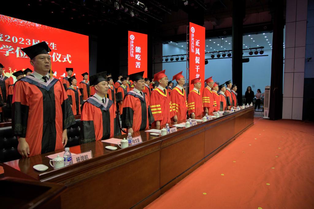 6月20日上午,我校2023届毕业典礼暨学位授予仪式在会堂隆重举行。全体在校校领导、校学位评定委员会全体委员、授位导师代表、各学院党政负责人、各机关教辅单位负责人、教师代表、2023届全体毕业生、毕业生家长代表1600余人参加典礼。典礼由副校长、校学位评定委员会副主任刘立新主持。
