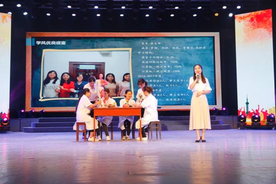 学生工作部部长周传兴对学校班级建设及本次班级风采大赛情况作出简要介绍。大赛期间,来自各个学院的9个优秀班级先后展示,分别从学习成绩、获奖情况、课外活动、寝室文化等方面展示各班风采。最终,2016级临床医学本科二班获得一等奖,2016级产品设计本科二班等两个班获得二等奖,2016级护理学本科2班等三个班获得三等奖,2017级法学本科二班等三个班级获得优秀奖。