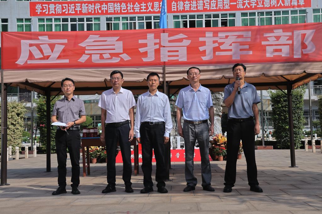 为不断强化师生防震减灾意识,提升应急避险和自救自护能力。9月14日上午,我校组织全体师生在南苑、西苑同时开展地震应急综合演练。党委副书记、校长王曙光,党委副书记、副校长刘立新,副校长朱波强、石维富亲临现场进行督查和调度指挥。