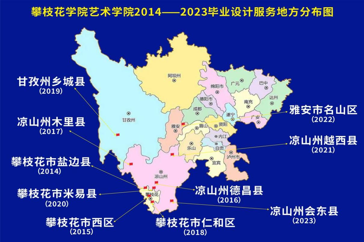 学院办学特色鲜明,毕业设计连续十年与攀枝花、凉山、甘孜、雅安等10个地方政府签订毕业设计合作协议,把学生的毕业设计做到了地方,做到了区县,做到了乡村。十年来,共计完成毕业设计作品2700余套,经济价值约500余万元,该项工作获得了各级政府的高度认可,学院也将持续深入地把这项工作开展下去,为区域经济及文旅发展提供智力支持和人才保障。