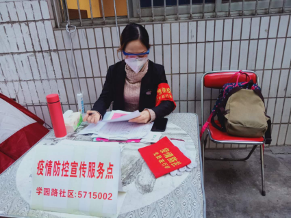 面对疫情,赵艳老师为学生守好“责任田”的同时,主动报名加入疫情防控志愿服务工作。她先后在阳城龙庭、印象米兰小区门岗值勤,承担了为进出人员测量体温、登记进出人员信息,同时向居民宣传防控知识、发放出入卡、为居家隔离期满的居民开具证明等工作。阳城龙庭小区有21栋楼两千多户共计5000余人,私家车2000余辆,人员结构复杂。与她一同来到这里服务的还有我校艺术学院教师秦汉帅和学生滕俊洁。由于小区人员多,进出量大,一天工作下来非常疲惫,但是他们自2月18日起就一直坚守在防控一线。“自疫情发生以来,攀枝花学院的师生都很关注疫情的变化,大家都希望出力,为疫情防控做一些事情。”志愿者赵艳说。