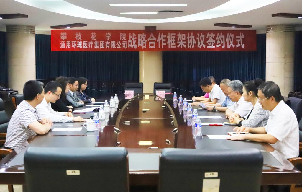 四川环康医院管理有限公司总经理于超,攀钢集团总医院党委书记刘川,攀钢集团总医院党委副书记、院长王平与我校党政办公室、基础医学院、康养学院负责人也参加了签约仪式。