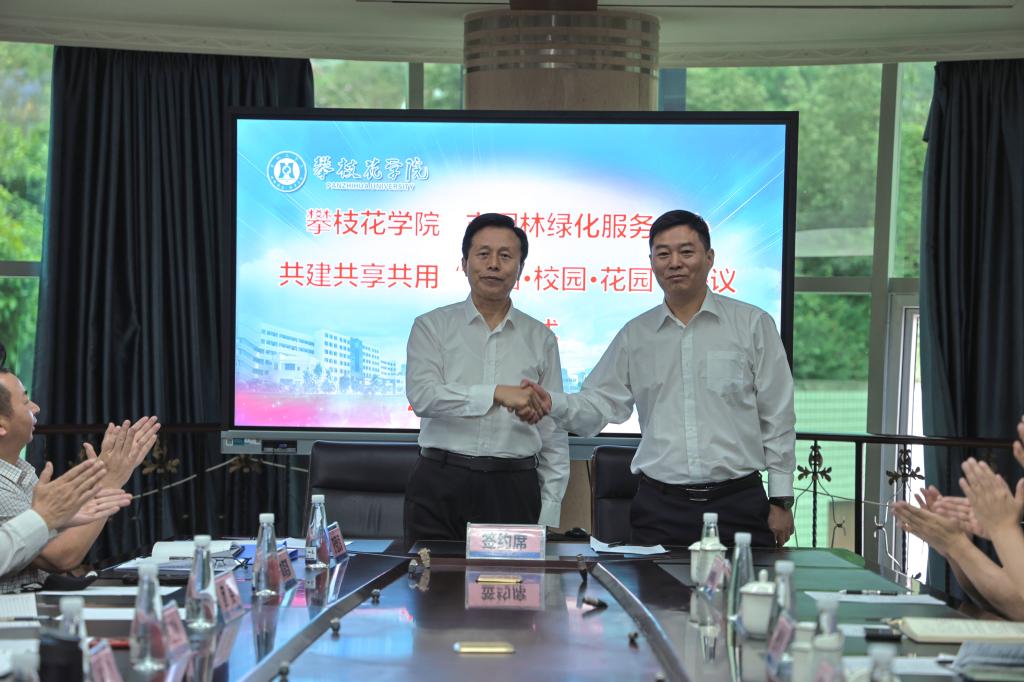 会上,王曙光与闫国富代表双方签订协议。根据协议,双方将围绕攀枝花市的发展战略,共享共用攀枝花学院、攀枝花公园的部分地域,通过新建园林景观和设施,为学生体育锻炼、军训拉练、劳动教育、志愿服务、休闲娱乐和社团活动提供条件,同时也将为市民提供休闲、锻炼和学习的绿色空间。
