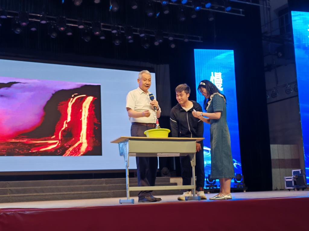 中国科学院地质与地球物理研究所研究员,博士生导师,白武明教授以“科学就在我们身边——地震、火山和地球”为题带领同学们开启了对地震、火山的认识和探索,运用数值模拟技术呈现出大陆漂移、地幔对流、海底扩张等地球板块运动过程,采用视频、照片等方式呈现了“极光之舞”等叹为观止的自然现象和景观,从知识的细致讲解到现场的实验展示,从科学精神的展现到科学成果的取得,整场讲座精彩频现,掌声不断。现场的互动提问环节激发了同学们强烈的探索欲和求知欲。