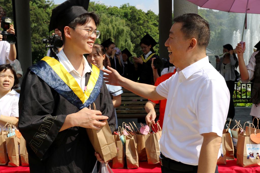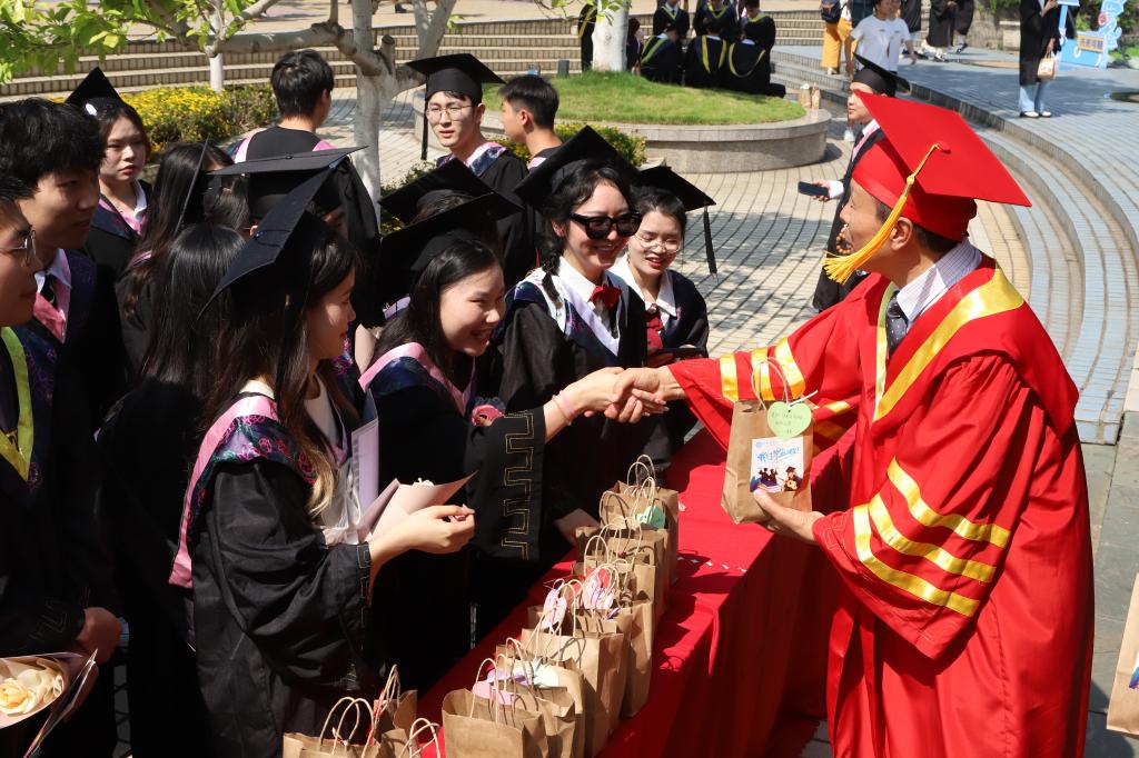 生化学院牛强代表全体教师寄语毕业生要做一个化危为机、勇毅不惧的奋斗者,胸怀家国、砥砺奋进的传承者,脚踏实地、扎根奋进的担当者,勇立潮头、敢为人先的开创者,不负青春年华,扛起时代使命。