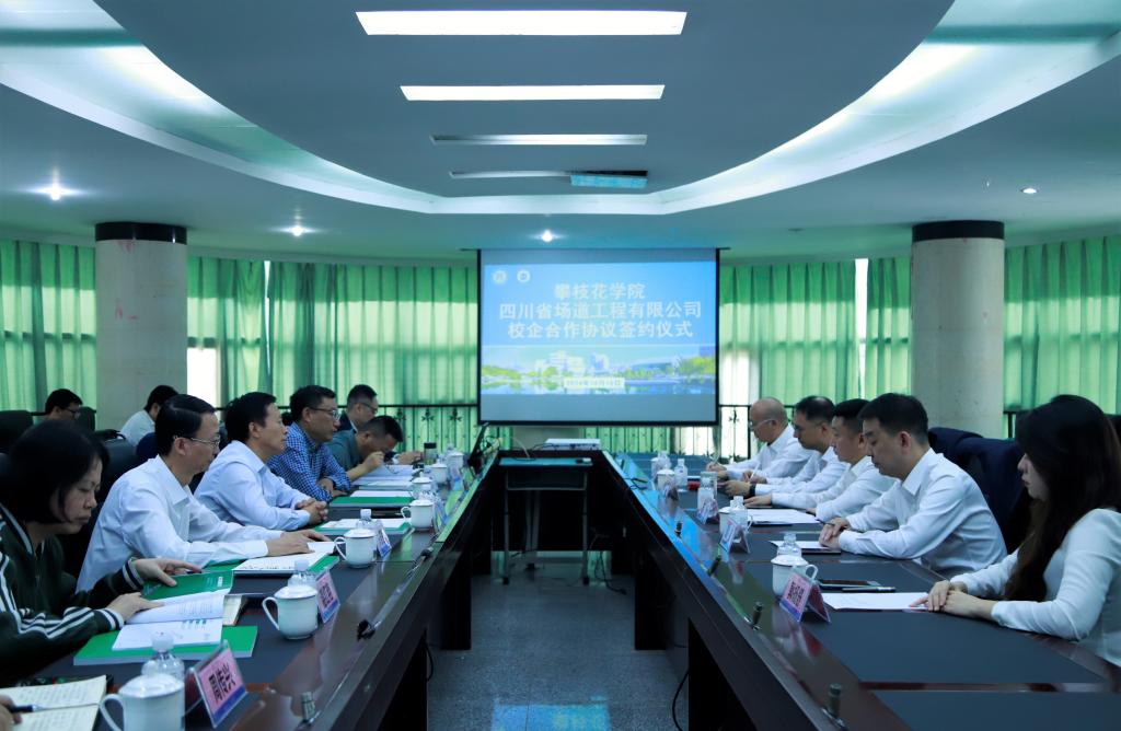 苏毅介绍了四川省场道工程有限公司发展情况,表示非常高兴能够与攀枝花学院建立紧密的合作关系,希望双方充分利用各自优势,在人才培养、科学研究、创新创业等方面实现资源共享、互惠共赢,为学生提供实践与就业机会,助力学生成长成才,为企业提供人才和智力支持。
