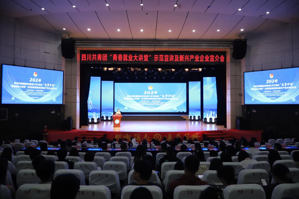 在会堂举办的“青春就业大讲堂”示范宣讲(第四场)中,两位导师围绕乡村振兴主题展开宣讲,相关企业负责人围绕新兴产业主题开展了宣介,师生代表700余人参加。