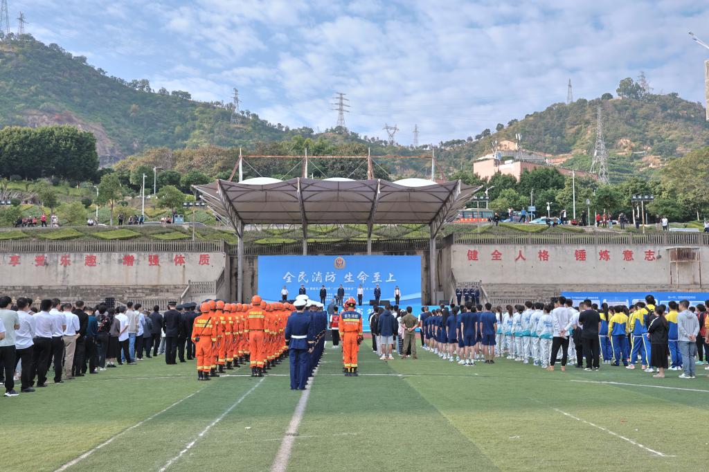 11月1日,攀枝花市2024年“11.9消防宣传”启动仪式暨首届高校(职业院校)消防运动会在我校西苑运动场举行,市委常委、副市长刘志弢,副秘书长余万兵,学校党委常委、副校长朱云生参加仪式。