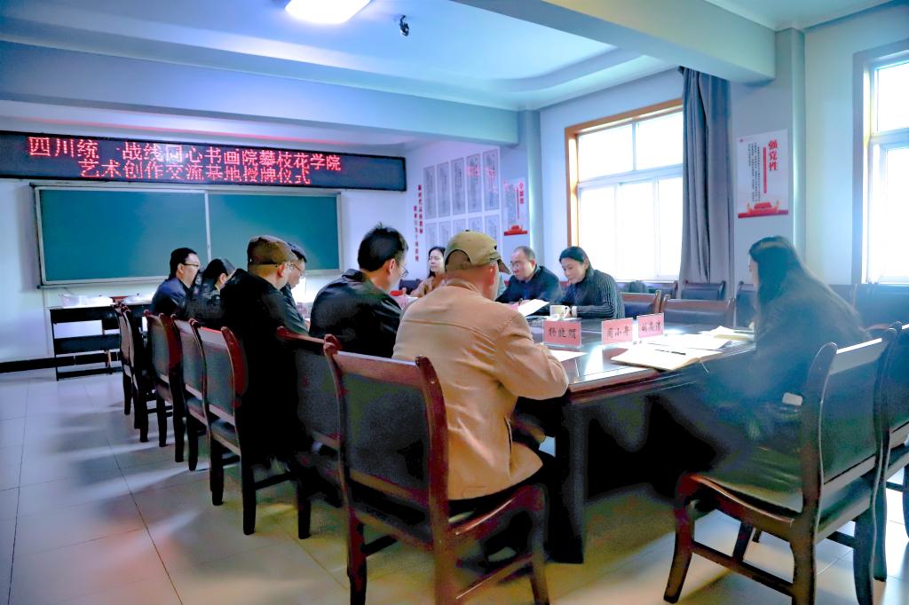 1120日,四川统一战线同心书画院攀枝花学院艺术创作交流基地授牌仪式在艺术学院会议室圆满举行。四川统一战线同心书画院常务副院长、四川省校园文学协会常务副会长兼秘书长孙成,四川统一战线同心书画院副院长、民进中央书画院副院长、四川开明画院院长杨晓亮,四川省社会主义学院一级调研员、同心书画院秘书长张正,四川统一战线同心书画院花鸟画专委会研究员谢从会,学校党委副书记刘立新出席活动,统战部、艺术学院、康养学院有关负责人,艺术学院师生代表参加活动。