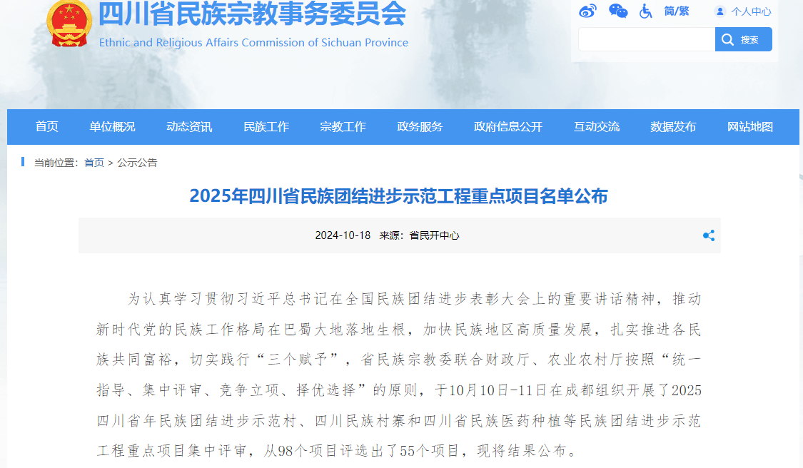近日,四川省民族宗教委员会公布了2025年四川省民族团结进步示范工程重点项目评审结果,我校帮扶单位——四川省甘孜州乡城县青德镇黑达村成功获批,该项目共获批1280万元资金支持,其中,民族地区开发资金1000万元,整合其他资金280万元。