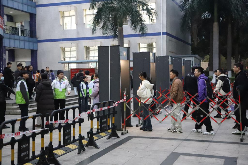 全力维护,公平公正。考点构筑 “六位一体”考试安全防护网。采用智能安检门、手机信号降频、无线电屏蔽、手机不进入考场、考务培训、智能巡查系统等举措,确保高科技作弊设备在研考中带不进、用不了、传不出,把好考试公平公正入口关。实施“双安检”,把好考生入场关。考生进入考区大楼后,通过智能安检门对考生携带手机等智能通讯设备进行安检,进入考场前,再次由监考老师进行人工复检。同时,市公安、学校保卫部门抽调人员力量,开展研究生招生考试专项执勤,做好考生安检、考区秩序维护、考场安全管控、试题押运保管、考区周边环境治理及校园交通保障等工作。