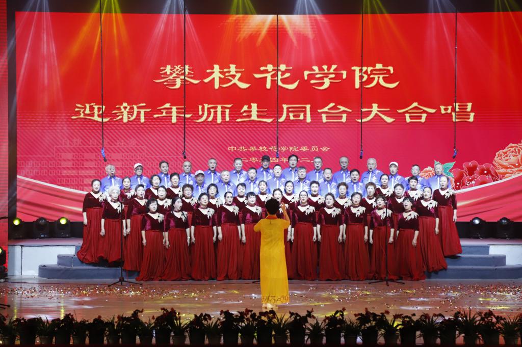 大学生艺术团为带来的校歌《这里得天独厚》,承载着全体攀大人共同的记忆和梦想,抒写了每位攀大人不断追求卓越、勇攀高峰的向往。由电气信息工程学院、审计处、人事处、国际教育学院带来的《江山》深情表达了党对人民的深情厚谊以及人民对党的衷心拥护;由附属医院带来的《不忘初心》激励着人们坚守梦想与使命,砥砺前行;由数学与计算机学院带来的《爱永在》传递出温暖与希望,歌颂人间大爱;由土木与建筑工程学院、计划财务处师生带来的《天路》展现了青藏铁路修建的伟大成就,让幸福的歌声传遍四方;由外国语学院、学工部、团委带来的《在灿烂阳光下》描绘了在中国共产党的光辉照耀下,人民生活的美好景象;由钒钛学院带来的《追寻》唱出了对理想信念的执着追求;由智能制造学院、研究生处、科研处、创新创业学院带来的《四渡赤水出奇兵》再现了红军长征途中的英勇智慧;由大学生艺术团带来的《如愿》寄托了对先辈的敬意和对美好生活的向往;由康养学院、公共实验中心、体育部、纪委办带来的《在太行山上》展现了抗日军民的英雄气概;由经济与管理学院、保卫处的《同一首歌》唤起人们对美好回忆的共鸣;由文学院、图书馆、组织部、资产管理处的师生《春天的故事》歌颂了改革开放带来的巨大变化;由基础医学院、办公室、招生就业处带来的《灯火里的中国》描绘了新时代安宁祥和的景象;由艺术学院、宣传部、统战部、发展规划处、教务处带来的《太阳在这里歌唱》赞美了阳光花城的蓬勃生机;由生物与化学工程学院、网络与计算中心、继续教育学院带来的《唱支山歌给党听》倾诉了对党的感恩之情;由法学院、马克思主义学院、工会、产教融合部带来的《光荣与梦想》彰显了为实现梦想而不懈奋斗的决心;由后勤管理处、资产经营公司带来的《祖国不会忘记》歌颂了那些为祖国默默奉献的人们。