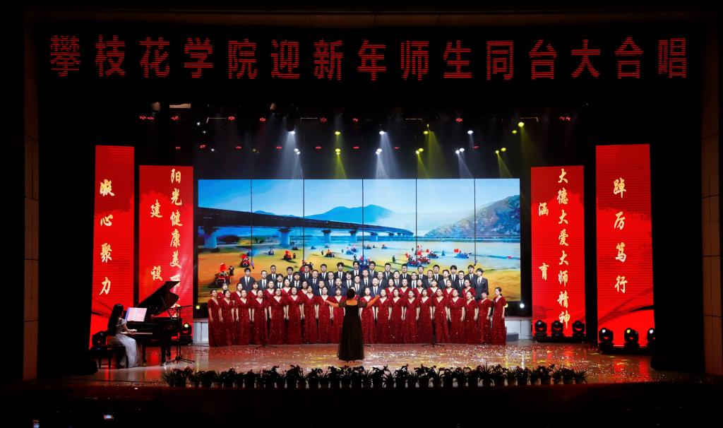 为庆祝中华人民共和国成立75周年,迎接新年的到来, 12月27日,学校在阳光会堂隆重举办迎新年师生同台大合唱活动。在校校领导出席活动,全校各学院、各部门15支队伍齐聚一堂、以歌传情,用激昂的歌声表达了对党和祖国的热爱,展现了攀大师生的精神风貌。