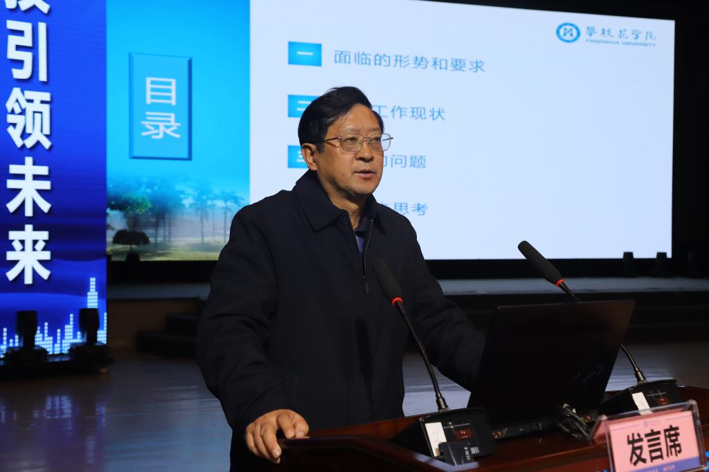 12月30日下午,我校在阳光会堂召开2024年科技工作大会。在校校领导,攀枝花市老科协会长赵忠义,攀枝花市科技局相关负责人,学校全体中层干部、高层次人才教师代表参加会议。党委书记胥刚出席会议并讲话。会议由党委副书记、校长李兴贵主持。