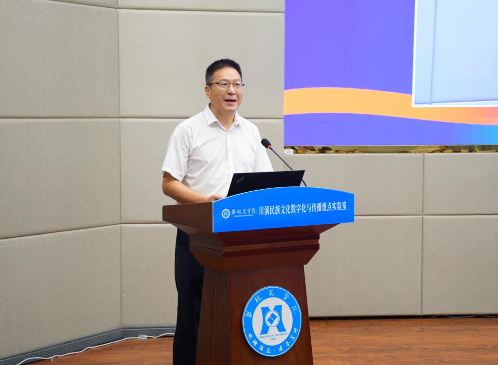 李兴贵代表学校致辞,他指出,实验室于2024年入选省级哲学社会科学重点实验室,标志着我校在人文社科领域迈上了新的台阶。学校将持续加大投入,开展有组织科研,力争在民族文化数字化传播、文化遗产数字化保护等方向形成具有示范意义的“攀大方案”。同时扩大与川滇六市州合作,依托实验室打造产教融合示范基地,为民族地区输送兼具文化底蕴与技术能力的应用型人才。