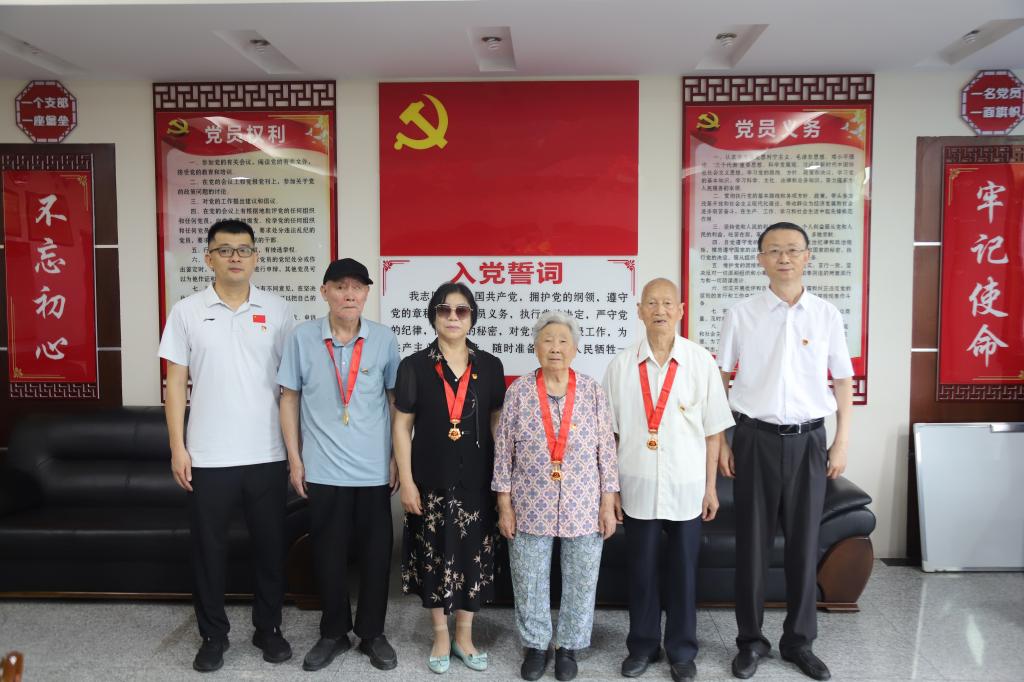 仪式上,朱波强为四位老党员逐一佩戴纪念章,表达学校对他们的崇高敬意。他指出,老党员们是学校的宝贵财富,他们的奉献精神和忠诚品质值得每一位党员学习,祝愿老党员们身体健康、阖家幸福,希望他们继续为学校的建设发展建言献策。老党员们纷纷表示,将继续关心关注学校的发展,为党的事业发挥余热,希望学校发展再上新台阶、事业再创新辉煌。