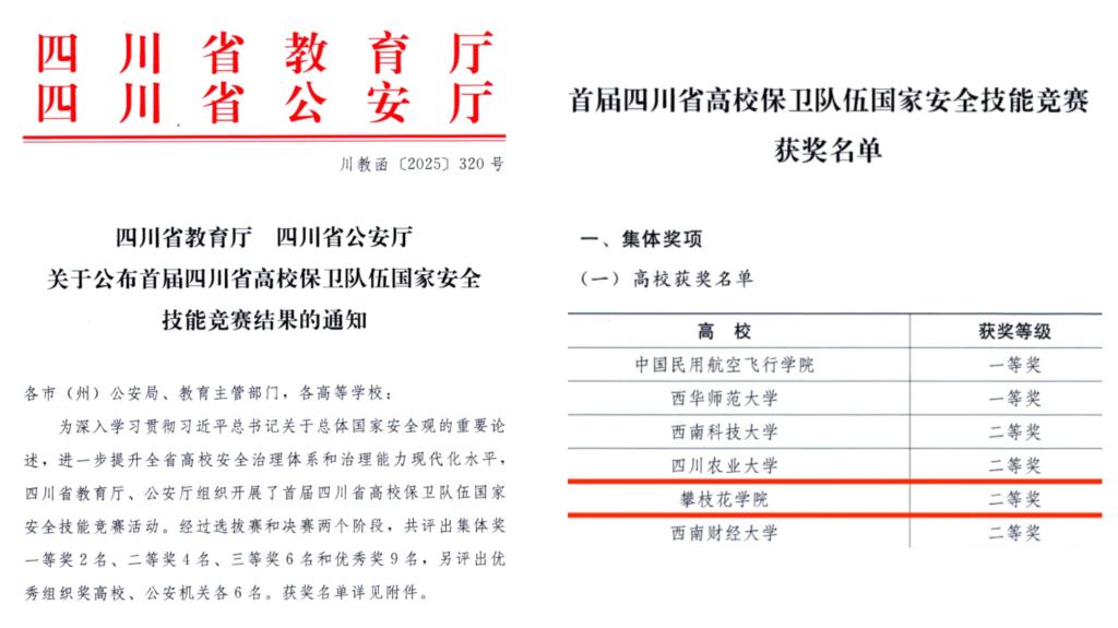 近日,由四川省教育厅、公安厅组织开展的首届四川省高校保卫队伍国家安全技能竞赛比赛结果正式公布,我校代表队凭借过硬的业务技能和出色的现场发挥,喜获二等奖。