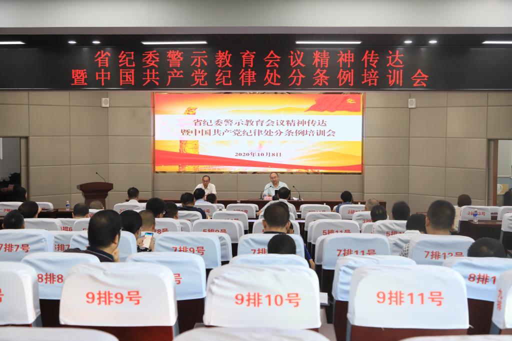2020年10月8日上午,省纪委警示教育会议精神传达暨中国共产党纪律处分条例培训会在纪检监察学院培训教室召开。省纪委监委驻攀枝花学院纪检监察组组长、党委副书记、纪委书记彭徐,学校纪委委员,二级纪委书记、纪检委员,组织人事部、教务处、科研处、计划财务处、资产管理处、招生就业处、后勤管理处、攀大科技产业有限责任公司等部门负责人,纪委机关全体人员参加会议。