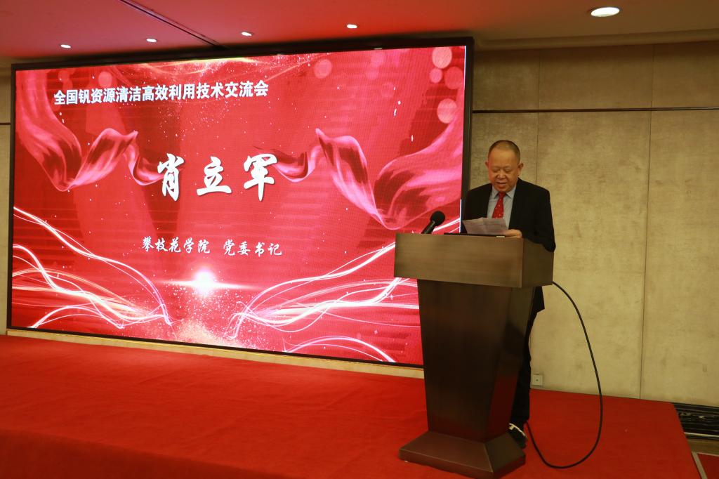 肖立军对大会的召开表示衷心祝贺,向与会来宾表示热烈欢迎,向长期以来关心支持攀枝花学院发展的各位专家和领导表示诚挚的感谢。他指出,攀枝花学院长期以来围绕钒钛资源开发及综合利用、钒钛新材料研制及应用、钒钛终端产品研发等重点优势产业开展了大量的科学研究和成果转化。他希望,通过此次交流会开辟钒资源高效利用的新途径,推动和提高钒产业资源利用率,为攀西试验区的发展和攀枝花“两城”建设提供人才和智力支撑。