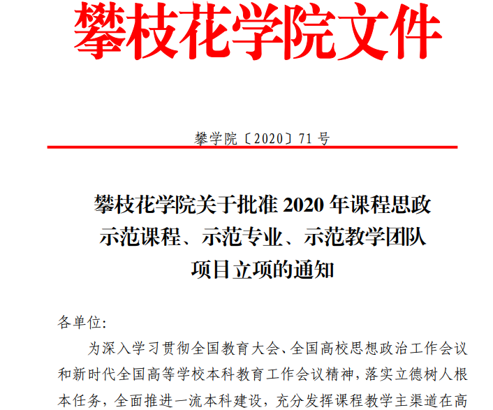 全力推进专业认证工作。2020年,临床医学专业认证顺利通过;材料科学与工程专业认证申请获2019年中国工程教育专业认证协会受理。近年来,成功立项软件工程等省级应用型示范专业5个,化学工程与工艺等省级一流本科专业等9个,《材料力学》等省级示范课程6门,《电路原理》等省级一流课程5门。推进教育信息化环境下教学方法和教学模式的改革,探索互联网技术支持下的线上线下混合式教学课程建设,制定《攀枝花学院混合式教学课程建设管理办法》,建设了141门校级混合式教学课程项目。