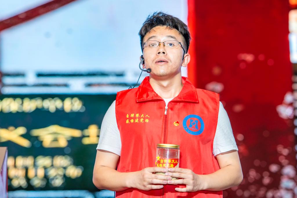 “一寸山河一寸血,一抔热土一抔魂”,“自律攀大人”范雨欣自信坚定地走到舞台中央,点亮国家地图展示台上的“北京”,将一抔在天安门采集的热土放在上面。