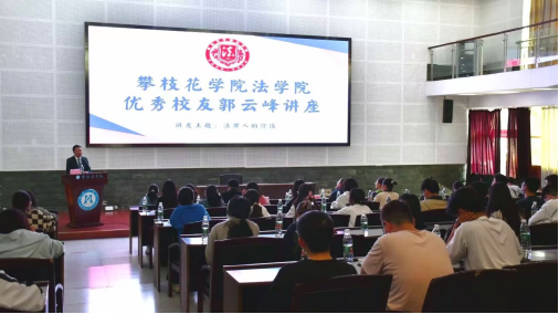 为庆祝我校39周年校庆,激励法学学子对标竞进,争创一流,法学院于11月11日在图书馆学术报告厅举行了优秀校友讲座,主讲人是现任四川协筑律师事务所主任、我校98级优秀校友郭云峰。校招生就业处(校友总会秘书处)负责人、学院班子成员、学生科长、辅导员、法学专业学生共130余人参加了讲座。