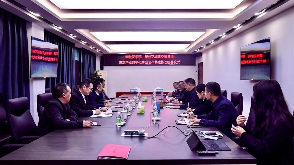 11月23日上午,副校长石维富带队赴攀枝花城建交通(集团)有限公司开展校企合作交流,并签署建筑产业数字化转型合作共建协议。攀枝花城建交通(集团)有限公司党委书记、董事长赵路,党委副书记、总经理付朴忠参加签约仪式。