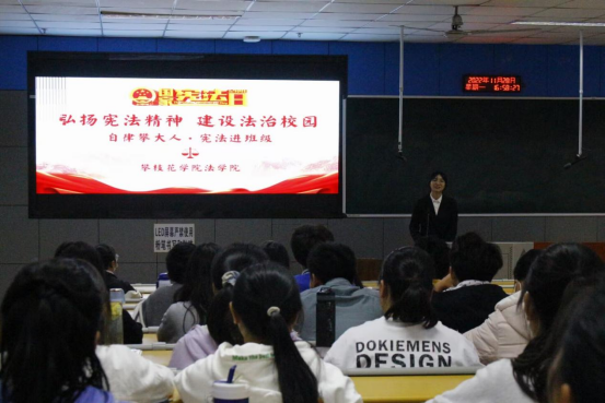 11月28日,在国家宪法日即将来临之际,基础医学院邀请法学院宪法宣讲团师生为本院学生开展了以“弘扬宪法精神 建设法治校园”为主题的宪法宣讲活动。