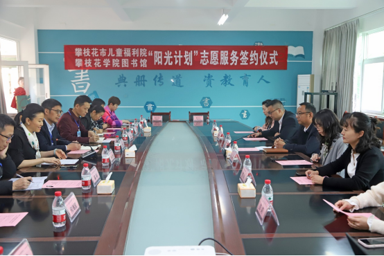 3月10日上午,学校图书馆与攀枝花市儿童福利院在图书馆二楼会议室举行“阳光计划”志愿服务签约仪式,并授“攀枝花学院图书馆‘阅读悦心’志愿服务站社会实践基地”牌。市民政局党组成员、副局长陈延秀,市儿童福利院主持工作副院长普浩、副院长罗玲,图书馆馆长王欢、副馆长何中勇,双方相关负责人、学生志愿者代表参加仪式。