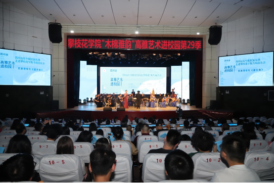 由省教育厅、省文化和旅游厅主办,我校承办的“木棉雅韵”第29季高雅艺术进校园——四川音乐学院民族乐团走进攀枝花学院专场音乐会于3月29日在会堂成功举办。