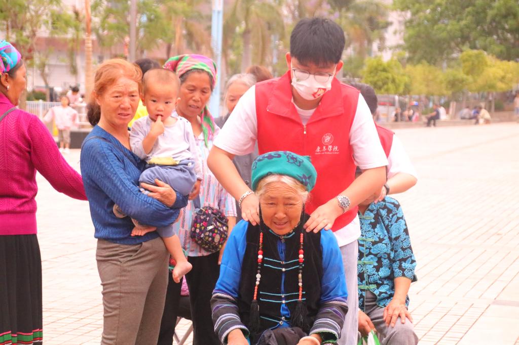 本次义诊专家云集,专业齐全,包含中医科、内科、外科、妇产科、儿科、心脏内科、康复医学科等专业,数百名群众前来咨询病情、接受诊治。我校教师志愿者现场指导民众进行心肺复苏等急救技能演示,助力增强民众的养生保健和急救意识。学生志愿者为民众测量血压、抚触按摩、健康宣教。县人民医院检验科还为民众开展了免费血糖检查。