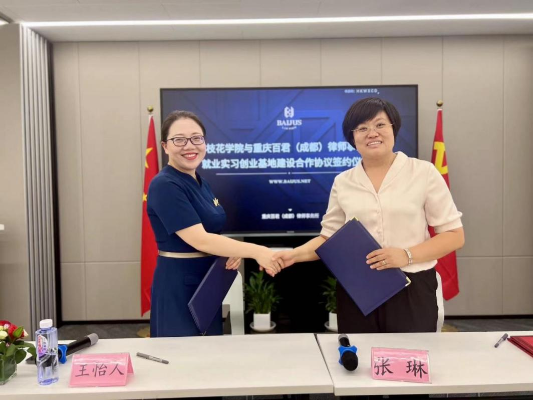 签约仪式上,重庆百君(成都)律师事务所王怡人主任首先对张琳一行的到来表示热烈的欢迎。王怡人介绍了企业的发展历史、未来发展规划,并表示加深校企交流,拓展合作空间将是企业发展的崭新机遇,也十分愿意为学校的发展提供支持,为学生继续提供实习和就业的平台,共谋融合发展。