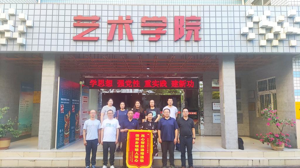 夏世武对艺术学院长期以来开展的音乐、美术教师教学技能培训,校园文化氛围打造等方面的帮扶工作表示感谢,并赠送“真心帮扶送培送教情倾乡城暖人暖心”锦旗。